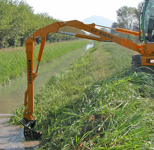 Energreen Ditch Bucket is available in two working widths of 100 and 150 cm. The bucket has been designed to be fitted with a special fastening plate fastened to the Energreen self-propelled ILF range telescopic booms.