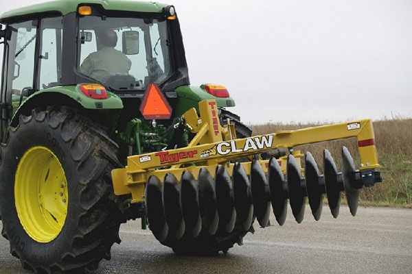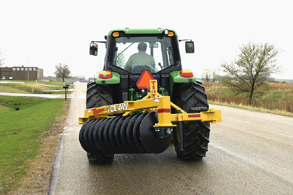 - For transport, the Tiger Claw manually folds to rear of tractor and is secured with a transport lock.