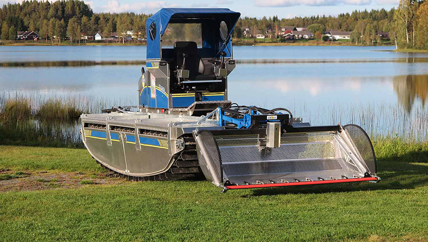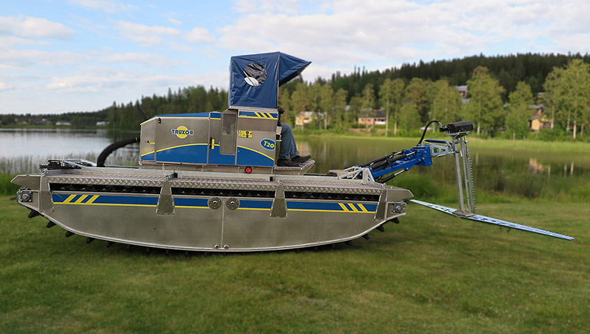 Truxor T20 is built with a 24.8 hp engine. Truxor T20 fulfils the latest environmental requirements. The model is ideal for weed cutting and collection of water plants and is equipped with one hydraulic outlet for running the cutter tool. The capacity of the Truxor is well suited for weed harvesting. For tools that require more power, we recommend machines from the T-series with higher capacity.